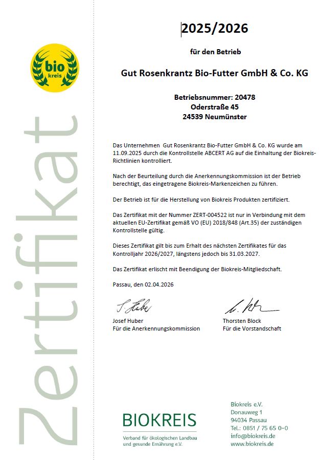 | Gut Rosenkrantz Bio-Futter GmbH & Co. KG Oderstraße 45 24539 Neumünster |
